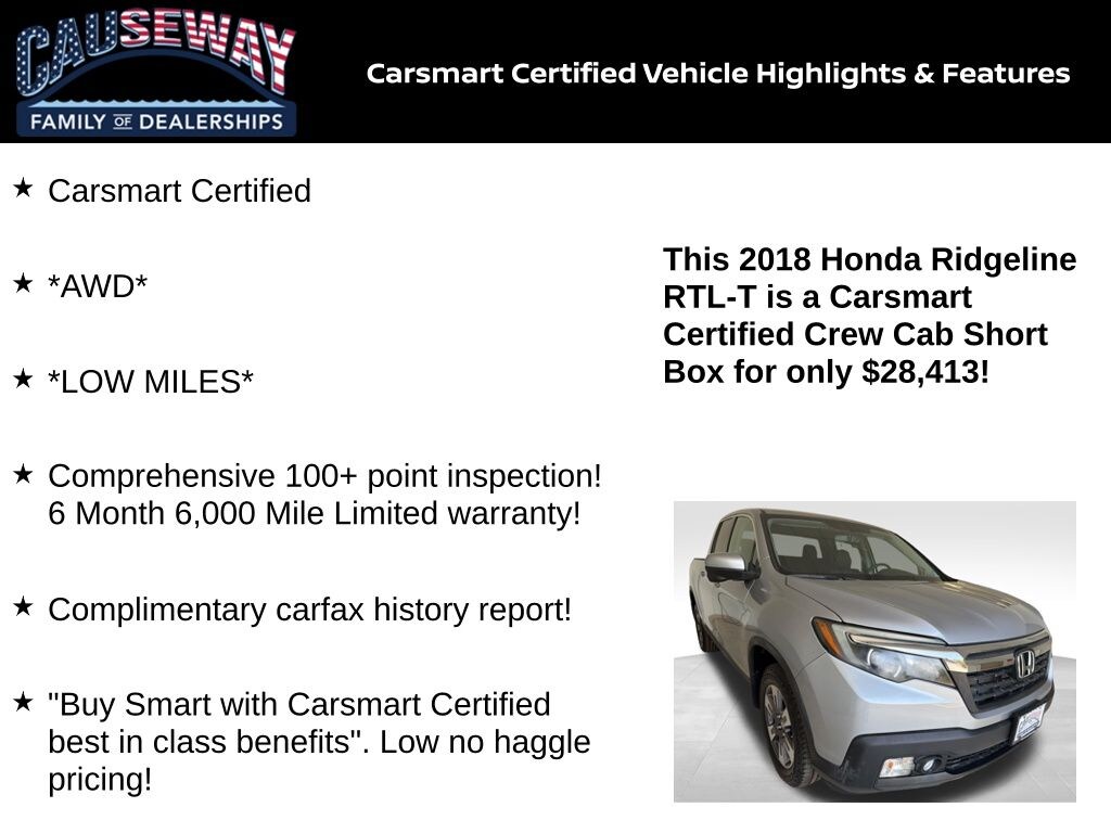 View this Certified Used 2018 Honda Ridgeline in Manahawkin, NJ at Causeway Lincoln of Manahawkin. Serving drivers near Manchester Township NJ, Hammonton, Beach Haven, Barnegat