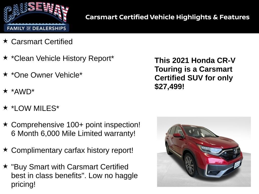 2021 Honda CR-V Touring AWD Radiant Red Metallic ⢠One Owner ⢠Carsmart Certified ⢠27/32 MPG