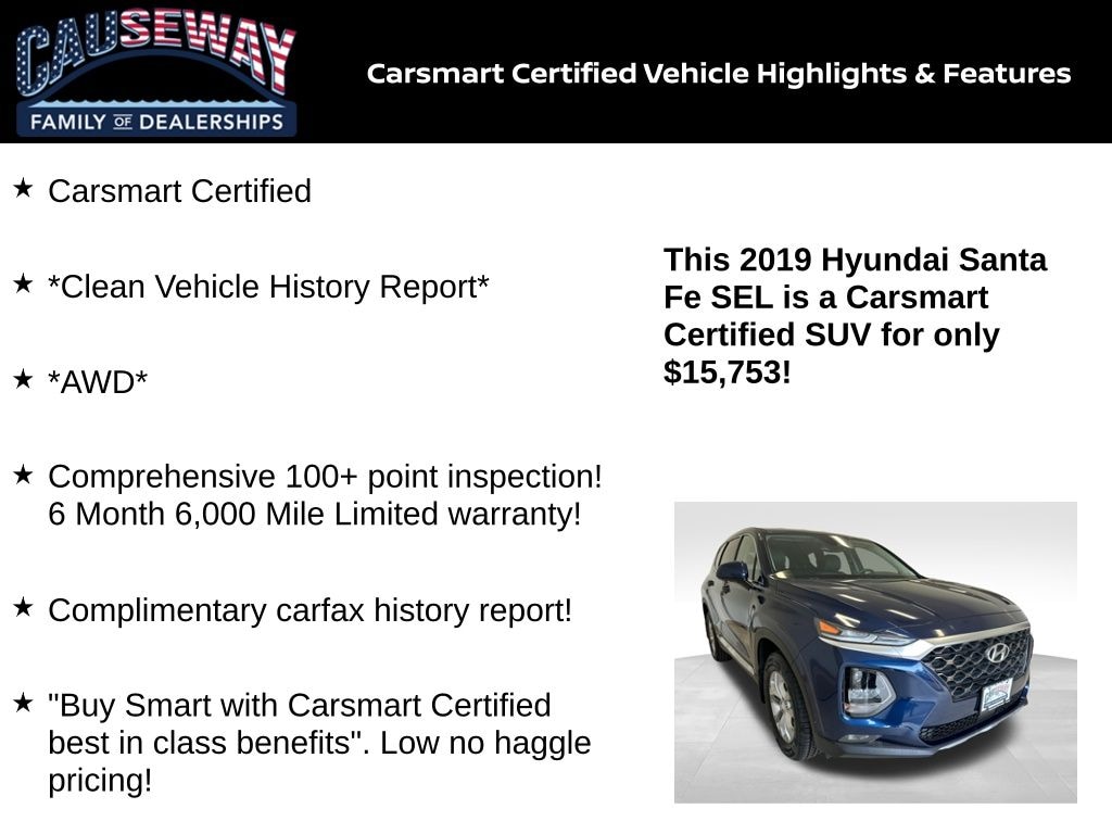 Turn everyday drives into easygoing journeys with this 2019 Hyundai Santa Fe SEL in elegant Stormy Sea. Its efficient 2.4L I4 DGI DOHC (185 hp) pairs with an 8-Speed Automatic with SHIFTRONIC for smooth, confident acceleration and relaxed highway cruisingwhile the composed chassis and speed-sensing steering keep it poised around town and steady on the interstate.