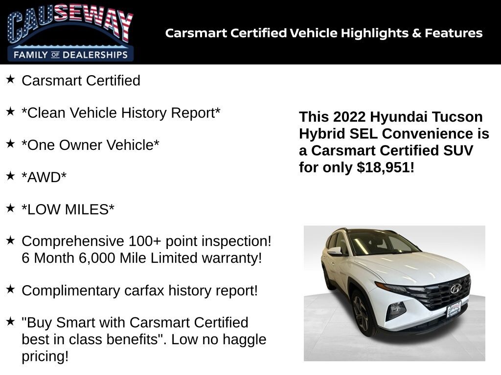 2022 Hyundai Tucson Hybrid SEL Convenience AWD Quartz White ⢠One Owner ⢠Carsmart Certified ⢠37/36 MPG