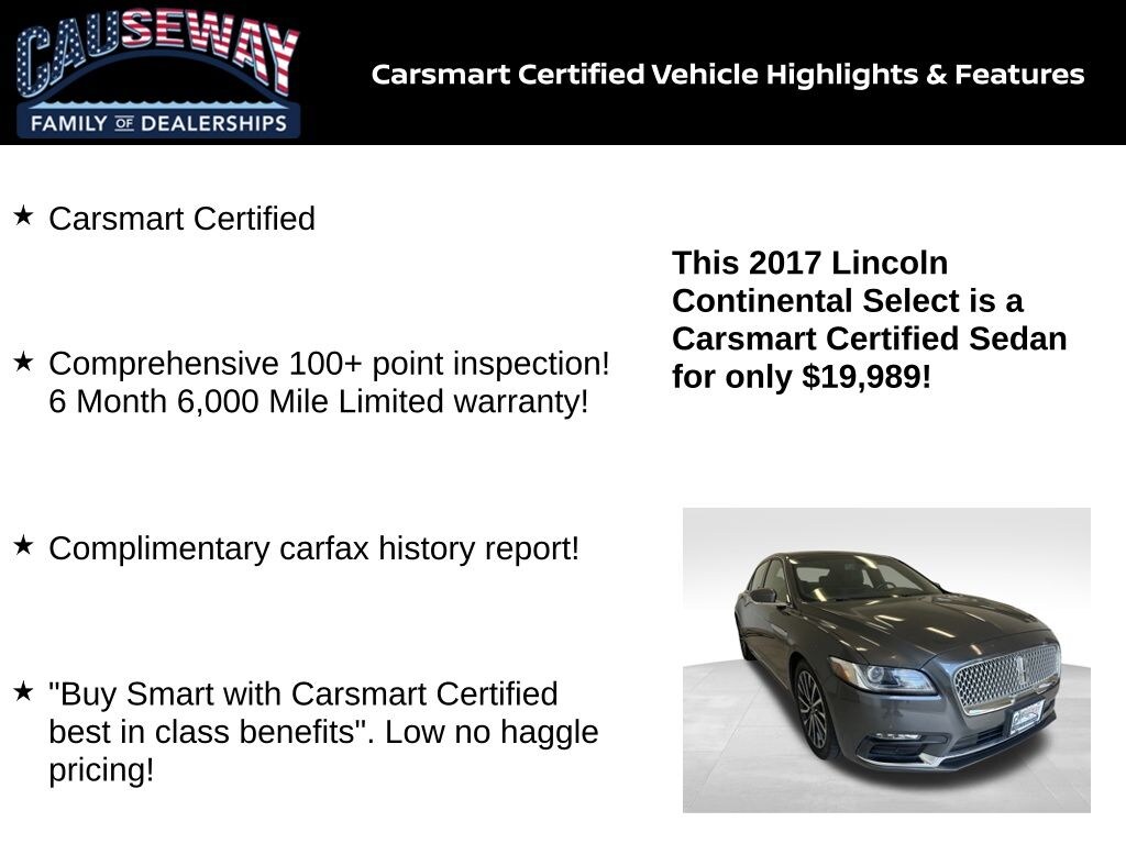 Experience the perfect blend of prestige, performance, and peace of mind with the 2017 Lincoln Continental Select luxury that you can feel in every mile.