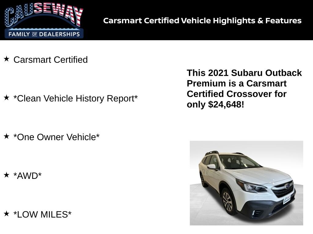 2021 Subaru Outback Premium AWD Crystal White Pearl ⢠One Owner ⢠26/33 MPG ⢠Carsmart Certified