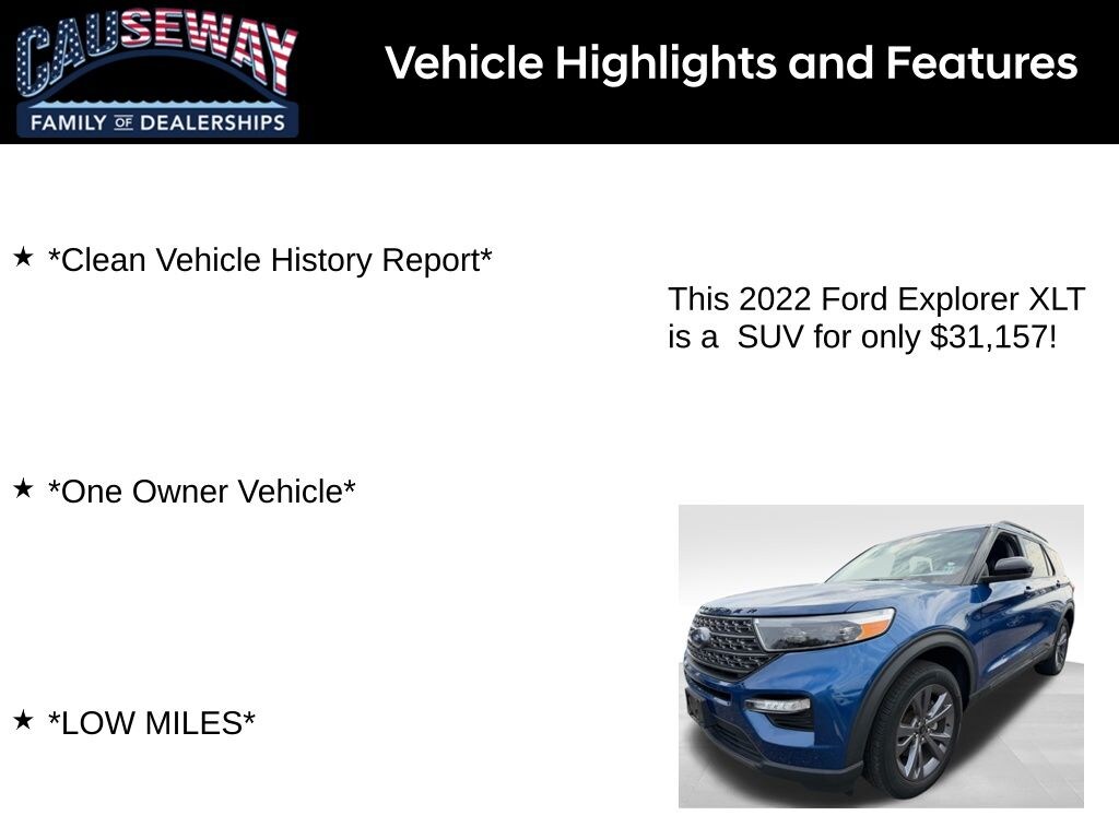 2022 Ford Explorer XLT Blue Metallic 4WD 10-Speed Automatic 2.3L EcoBoost I-4 *Clean Vehicle History Report*, *One Owner Vehicle*, *LOW MILES*, 4WD.