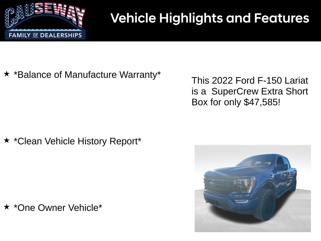 2022 Ford F-150 Lariat Atlas Blue Metallic 4WD 10-Speed Automatic 3.5L V6 EcoBoost *Balance of Manufacture Warranty*, *Clean Vehicle History Report*, *One Owner Vehicle*, 4WD.
