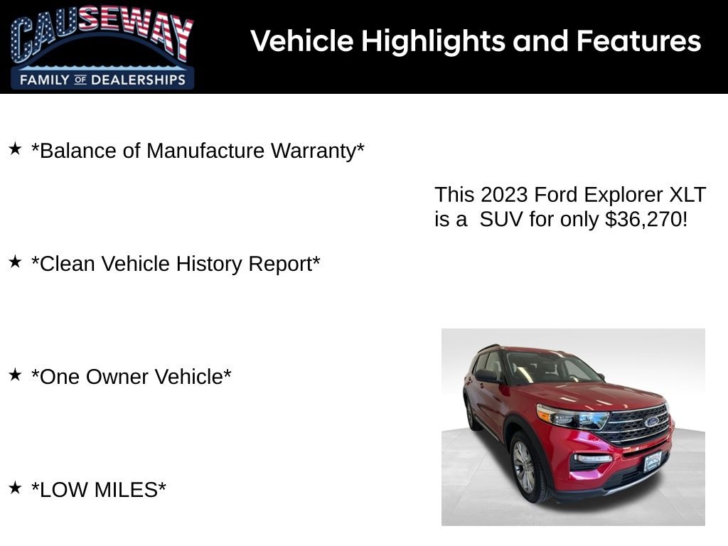 2023 Ford Explorer XLT 4WD Rapid Red ⢠One Owner ⢠Low Miles ⢠Balance of Factory Warranty