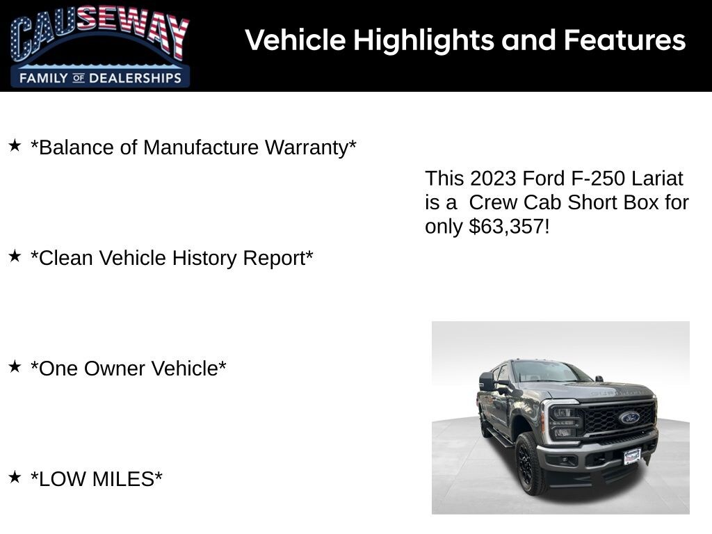 2023 Ford F-250SD Lariat Gray Metallic 4WD 10-Speed Automatic 7.3L V8 PFI OHV 16V Federal 430hp *Balance of Manufacture Warranty*, *Clean Vehicle History Report*, *One Owner Vehicle*, *LOW MILES*, 4WD.