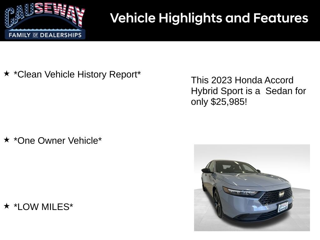 2023 Honda Accord Hybrid Sport Meteorite Gray Metallic FWD eCVT 2.0L 16V DOHC *Clean Vehicle History Report*, *One Owner Vehicle*, *LOW MILES*, 2.0L 16V DOHC.