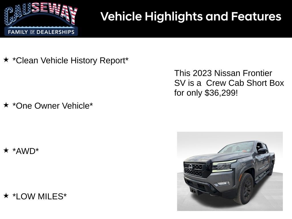2023 Nissan Frontier SV Gun Metallic 4WD 9-Speed Automatic 3.8L DI DOHC 24V V6 *Clean Vehicle History Report*, *One Owner Vehicle*, *AWD*, *LOW MILES*, 4WD.