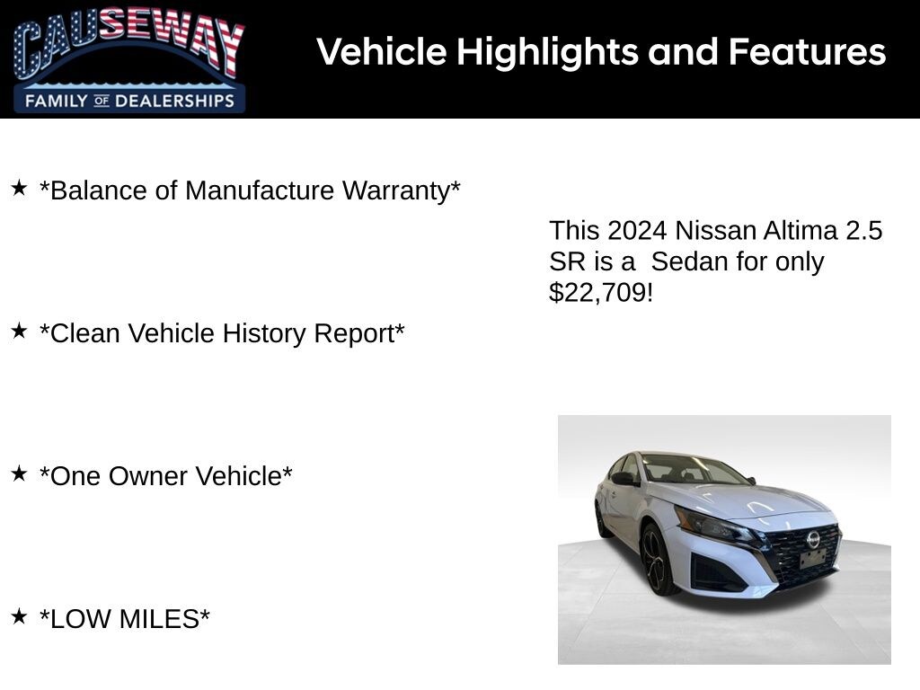 2024 Nissan Altima 2.5 SR Gray Sky Pearl FWD CVT with Xtronic 2.5L 4-Cylinder DOHC 16V *Balance of Manufacture Warranty*, *Clean Vehicle History Report*, *One Owner Vehicle*, *LOW MILES*, CVT with Xtronic.